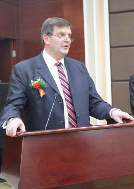 李合军在致词中讲到,金威煤电公司依托自身资源优势和现有氯乙酸生产装置,与世界知名的化工企业德国凯本公司合作,组建凯本金威特种化学品(济宁)有限公司,不仅实现了优势资源与先进技术和资本的有效对接融合,而且为金威煤电加快推进精细化工产业发展,实现产业升级搭建了技术平台,迈出了走向国际市场,参与国际合作的第一步,是企业发展的重大突破。