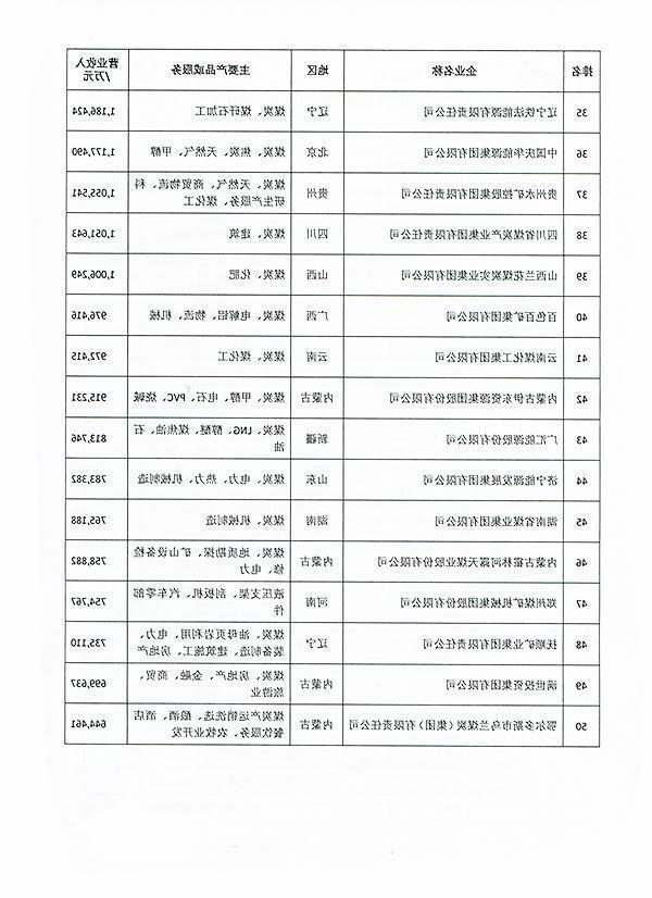 2018中国煤炭企业50强名单发布 济宁能源上榜 8月6日,中国煤炭工业协会发布了“中国煤炭企业50强名单”和“中国煤炭产量50强”,我省有山东能源集团、兖矿集团,济宁能源发展集团、鲁泰控股集团四家企业进入两大榜单。 据了解,为推动现代化煤炭经济体系建设,促进行业结构调整与转型升级,提升煤炭行业凝聚力和社会影响力,并为国内外各界提供中国煤炭大企业发展的相关数据与研究信息,中国煤炭工业协会参照国际通行做法,在连续15年发布的基础上,通过企业自主申报与协会统计指标数据相结合的方式,按企业2017年度营业收入为标准排出了2018年中国煤炭企业50强,按照企业2017年度煤炭产量为标准排出了煤炭产量50强。 此次“中国煤炭企业50强名单”中,山东能源集团以3085亿元营业收入列第二位,兖矿集团以1992亿元营业收入列第五位,此外济宁能源发展集团以78亿元列第44位。 同期发布的“中国煤炭产量50强”显示,去年山东能源集团煤炭产量1.4亿吨、兖矿集团1.3亿吨、济宁能源发展集团972万吨、鲁泰控股集团533万吨。(摘自《光明网》)
